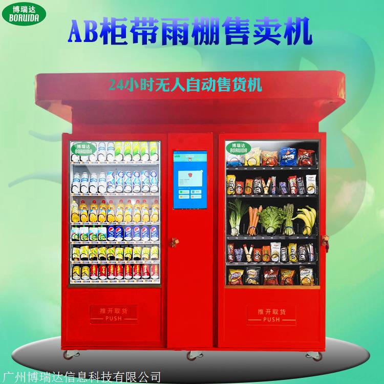 带遮阳棚的自动售货机厂家 新款防雨棚自动售货机价格,怎么样处理售货机浸水的问题