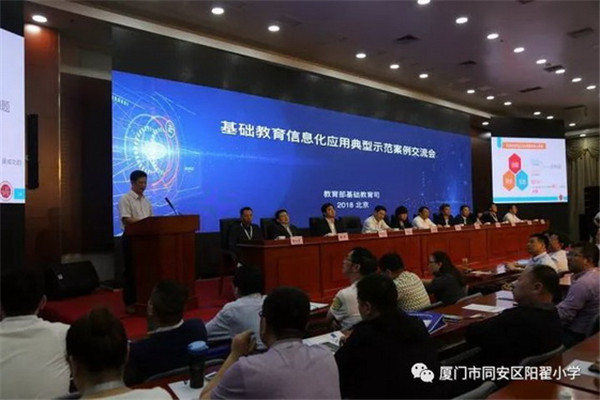 在今年5月举行的第三届全国基础教育信息化应用展示交流活动中,厦门市同安区阳翟小学受邀作案例分享。该校从2013年开始探索远程同步互动课堂,从与同安区白交祠教学点开展常态化远程同步互动教学活动开始,到如今与台湾、香港、吉林等地11所小学开展远程同步互动教学,涉及语文、数学、英语、音乐、科学等学科。